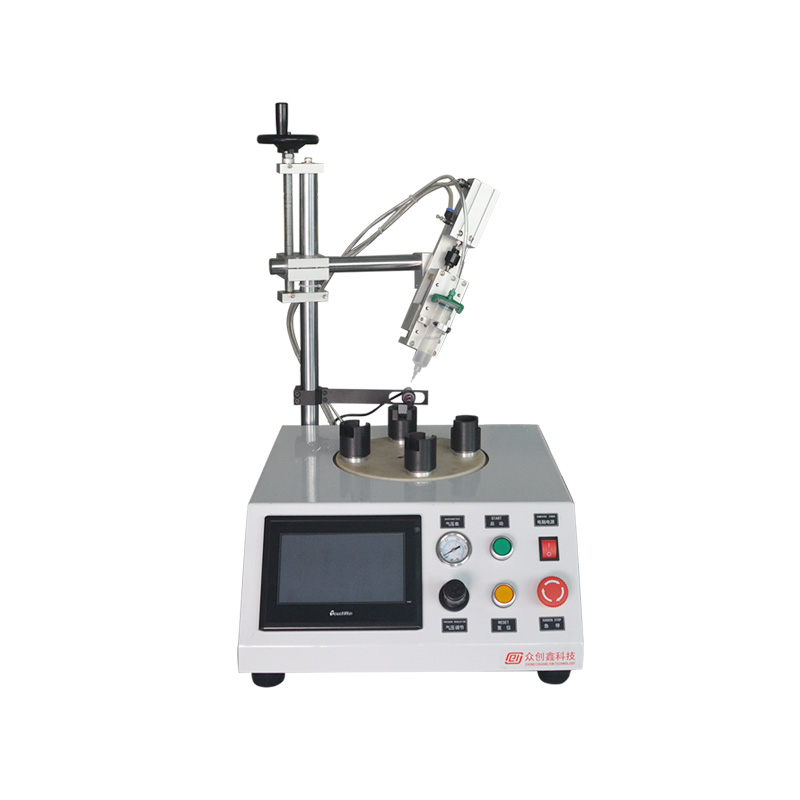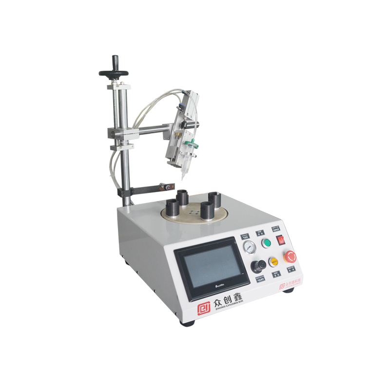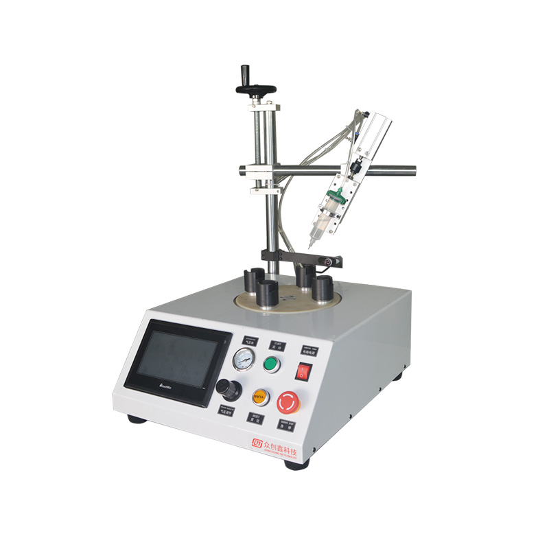 3、四工位分度圆盘设计,效率大幅提高,产能可达1500支/小时;程序设定可整圆点胶,也可分段圆弧点胶、单点点胶;