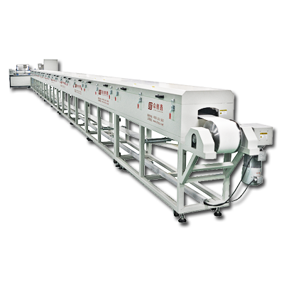 硅胶挤出机生产线热空气硫化烘道:两段式,定型段长2米和后烘段长18米,内部为304不锈钢板,中置硅酸铝保温材料,外部为铁板喷涂,变频无级调速。